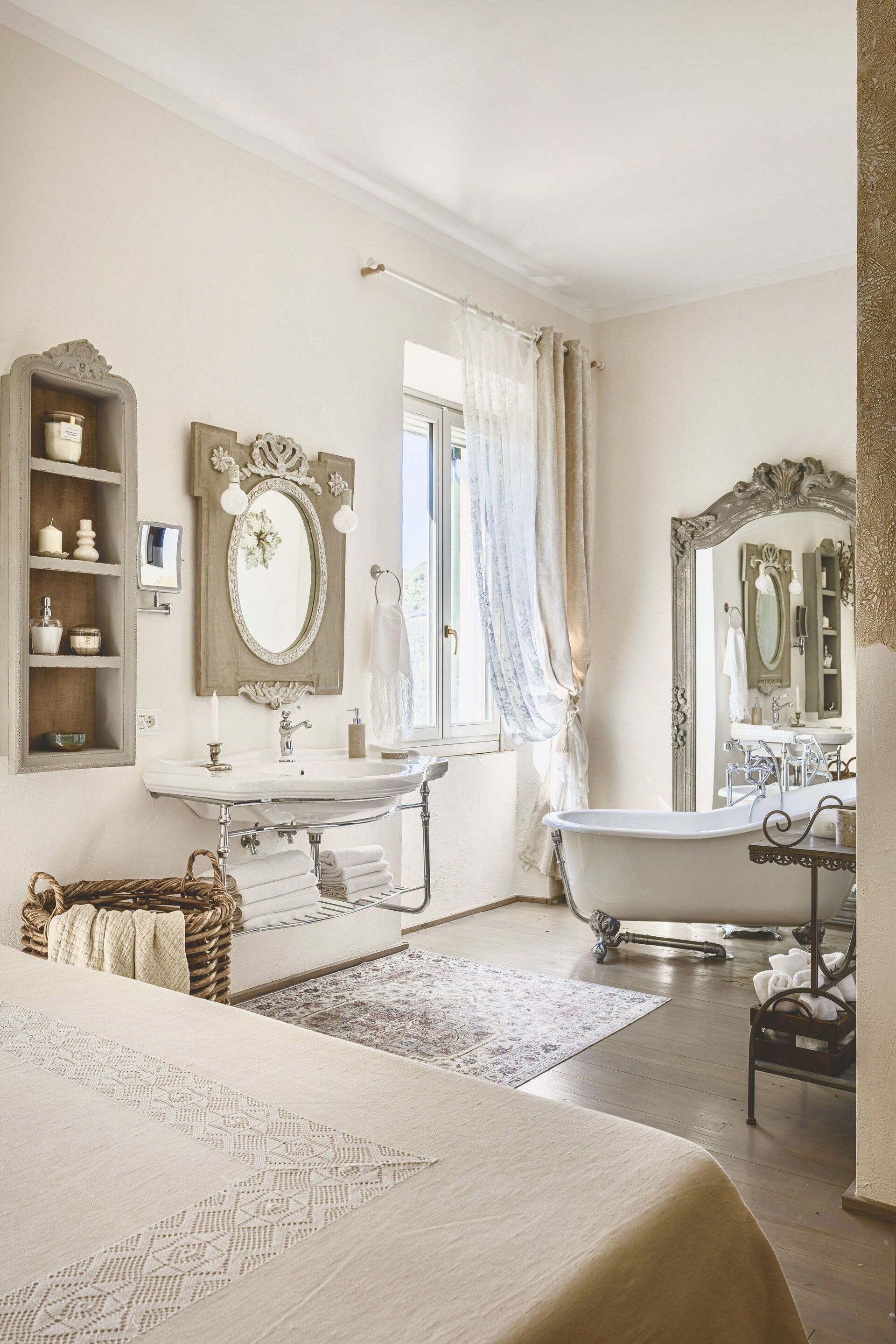 Habitación con baño 1 (35 m2): cama de matrimonio (ancho: 2m, longitud: 2m), aire acondicionado, mosquitero, tv vía satélite, lavabo, baño, bañera, secador, baño sin ventana.