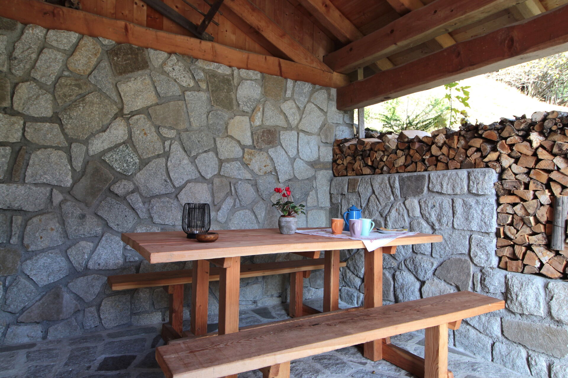 Porche 1: comer al aire libre, mesa de comedor, WIFI internet, mobiliario de terraza.