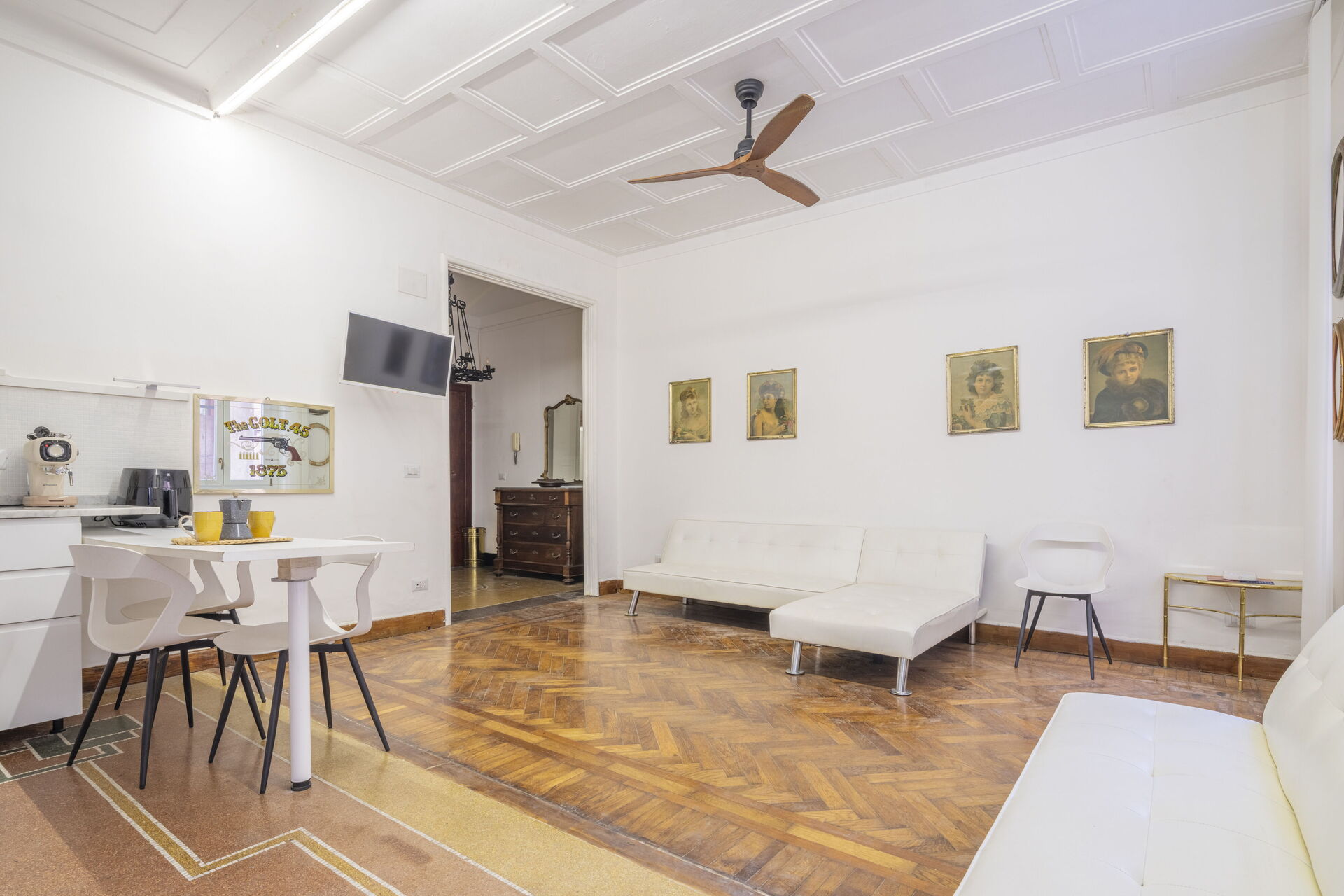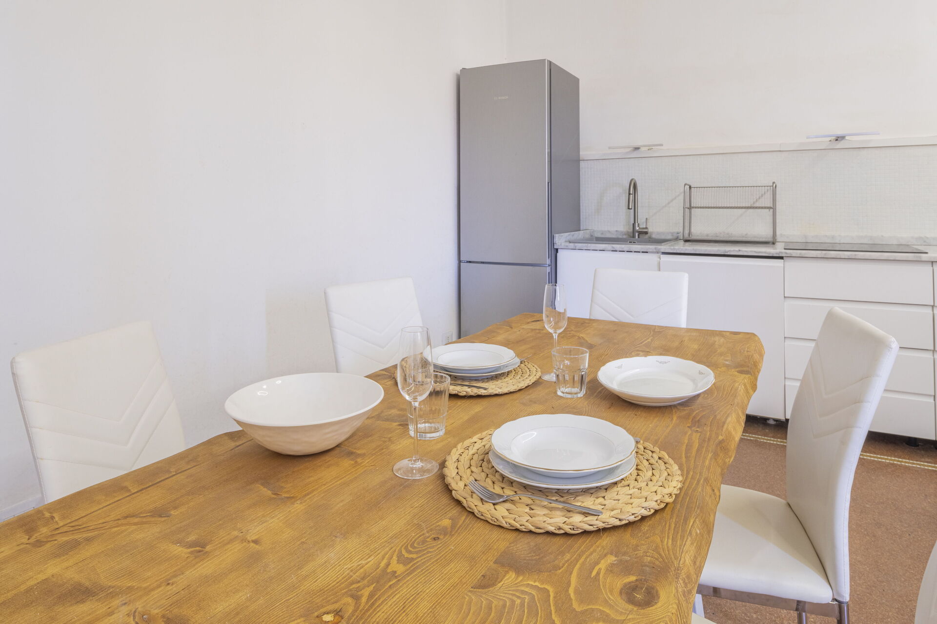 Cocina-salón: cocina bien equipada, mesa de comedor, lavavajillas, frigorífico, congelador, cocina de gas, tostadora, máquina de café italiana, dos sofas, WIFI internet, televisión, ventilador de techo, acceso a la terraza.