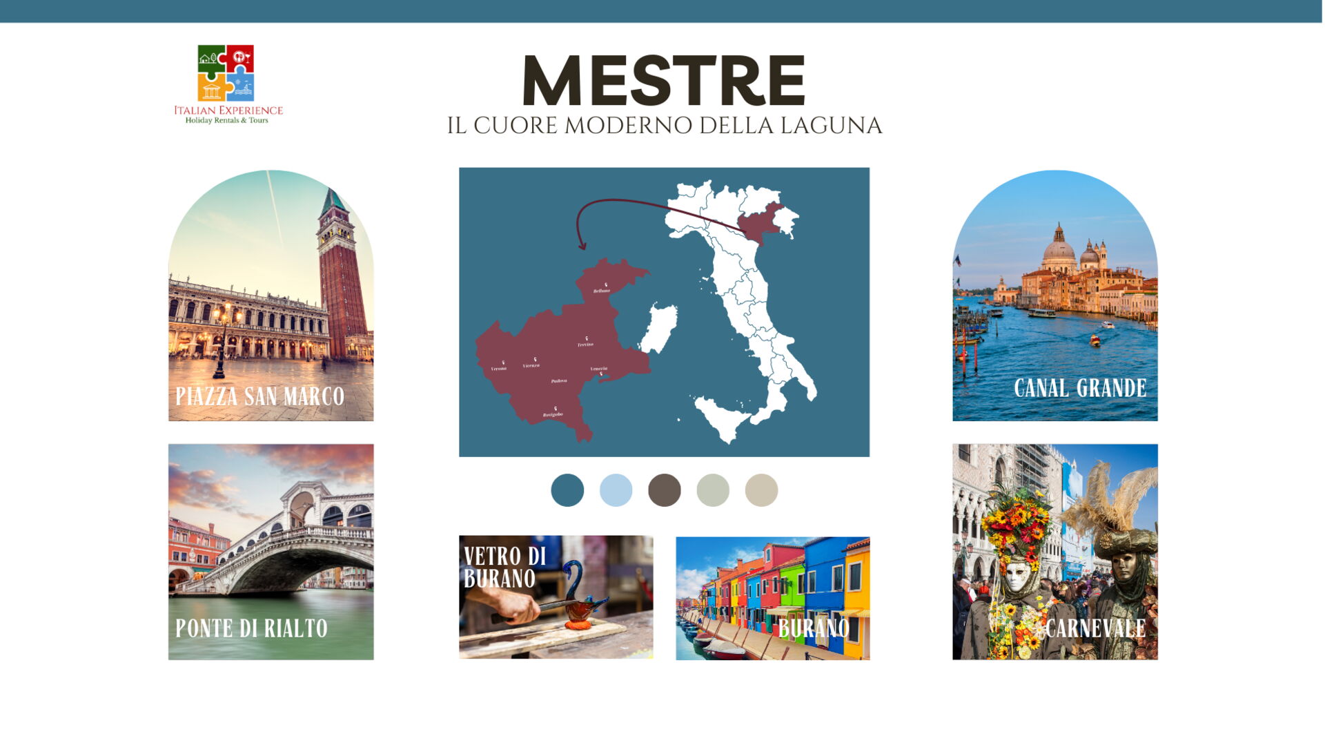Aeropuertos más cercanos (distancias en linea recta): Venezia (vce) 10 km, Treviso (tsf) 22 km, Trieste (trs) 121 km, Bologna (blq) 152 km and Bergamo (bgy) 216 km.