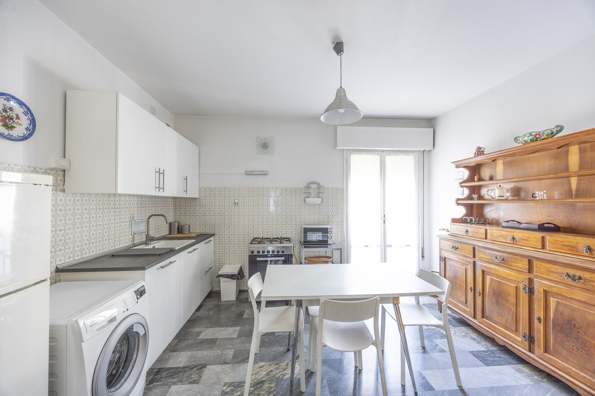 Cocina: cocina bien equipada, mesa de comedor, frigorífico, congelador, microondas, cocina de gas, horno, tostadora, máquina de café italiana, máquina de café americana, WIFI internet, acceso al balcón.