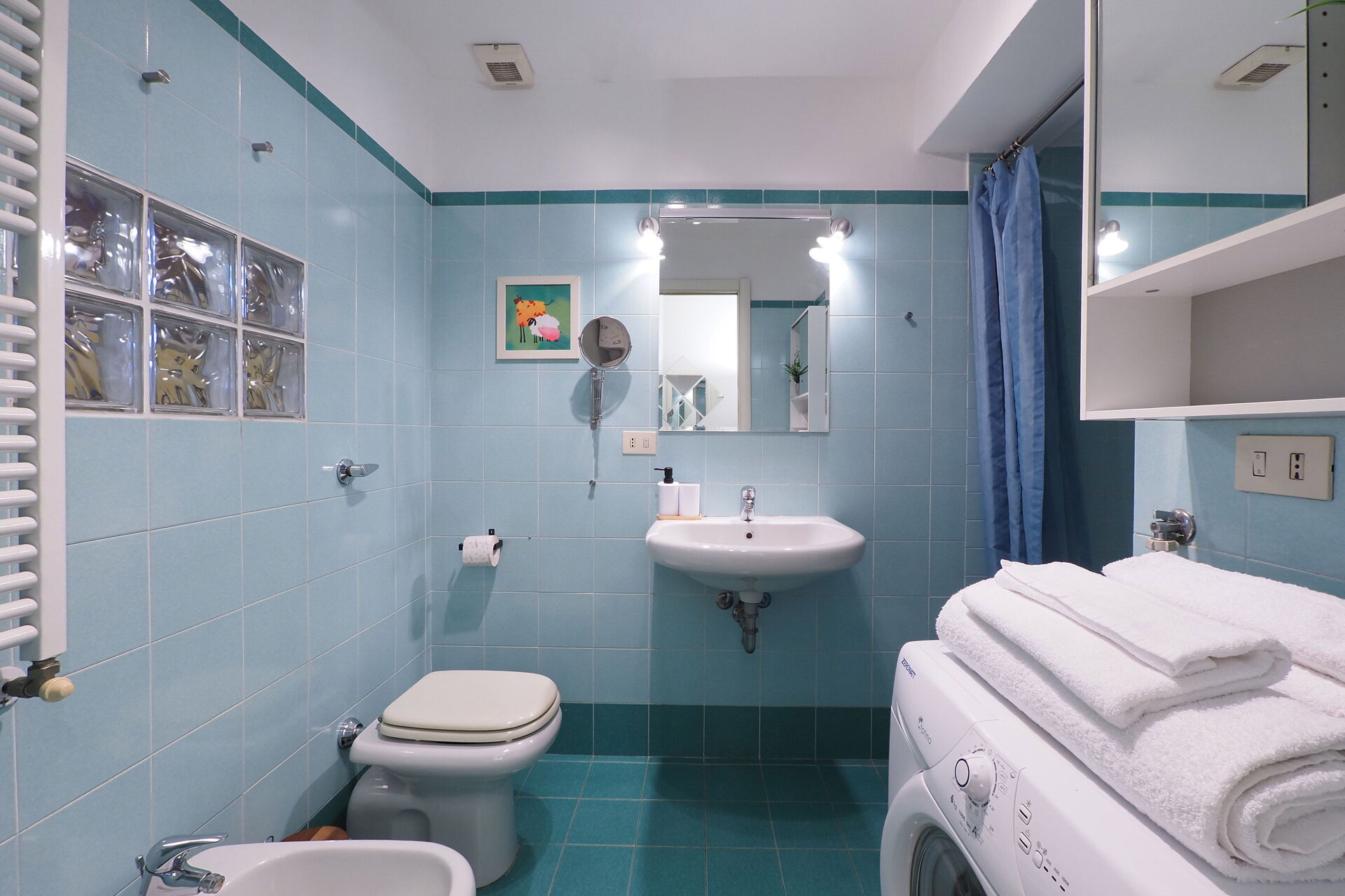 Baño: lavabo, baño, bidé, ducha, secador, lavadora.