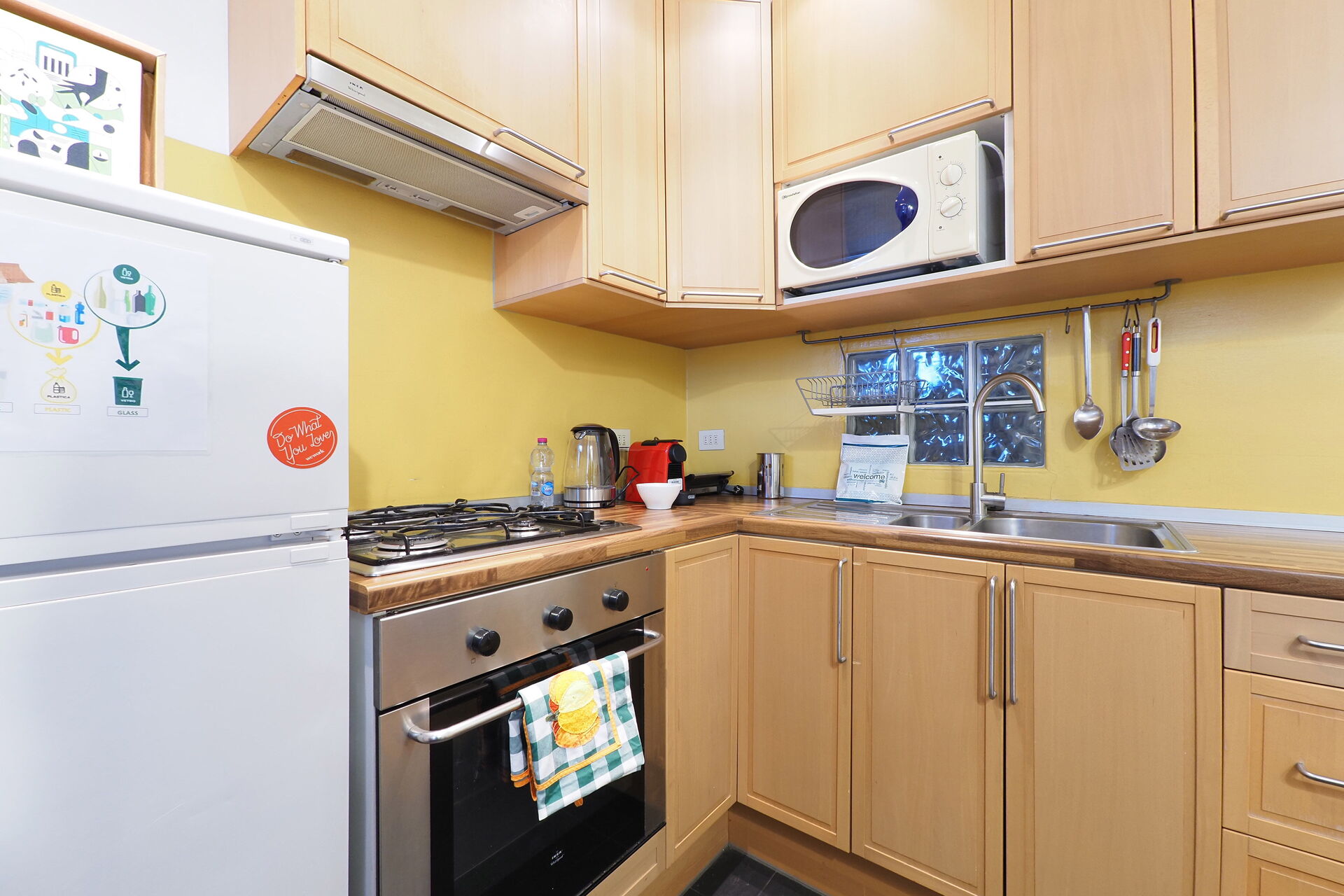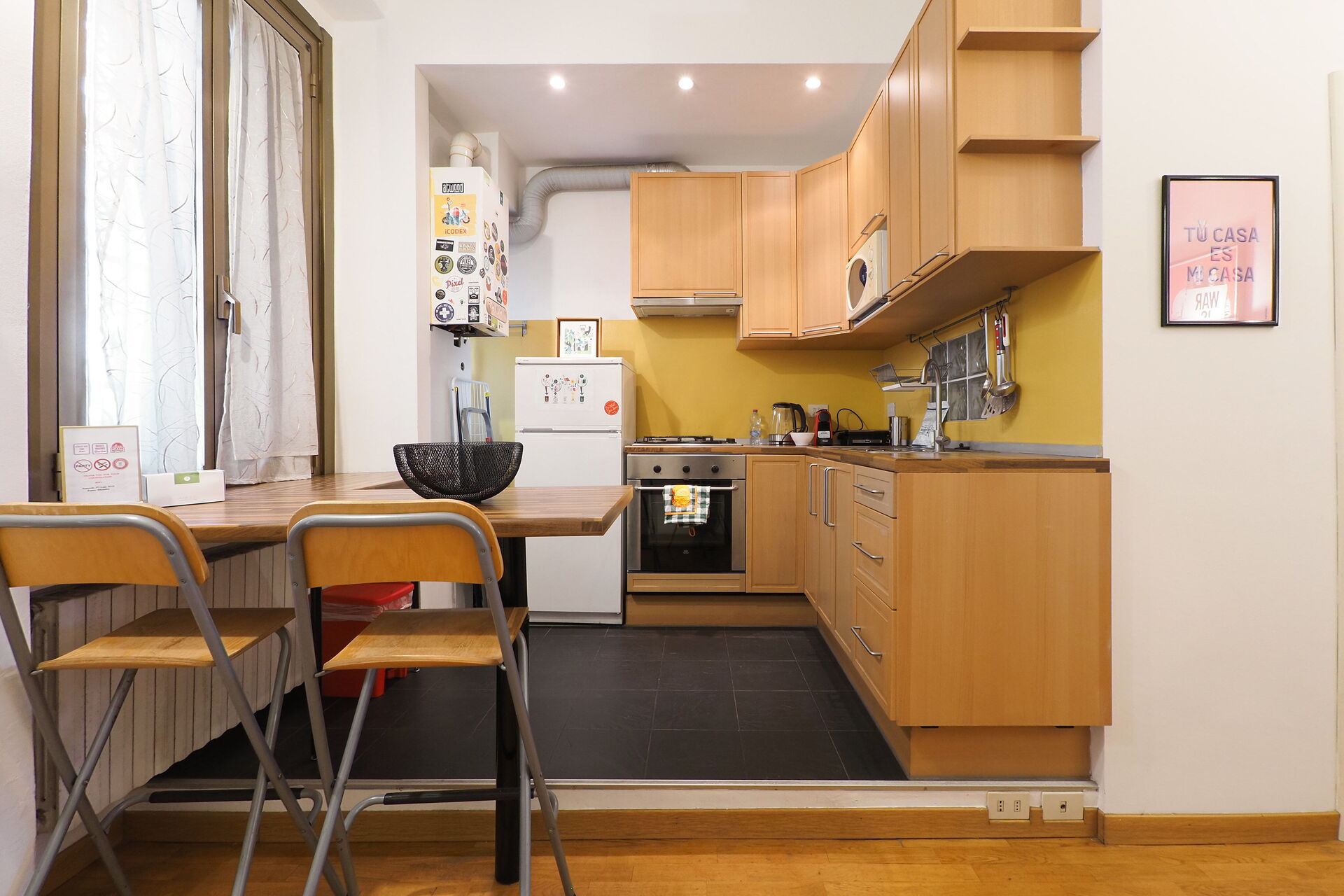 Tras llegar encontrará una hermosa propiedad limpia y acogedora perfecta para unas vacaciones relajantes en Lombardía. Independientemente de como pasa sus días - museos, excursiones, shopping o simplemente visitando y descubriendo el paisaje, cuando llega a casa puede relajarse con amigos y familia para un final de día perfecto en Lombardía. Comer con familia y amigos es un aspecto de gran importancia en la cultura italiana. Aproveche de una cocina bien equipada para preparar comidas utilizando productos locales durante sus vacaciones. La cocina incluye cafetera, estufas y nevera, además de, muchas vajillas y cubiertos para hasta cuatro personas.