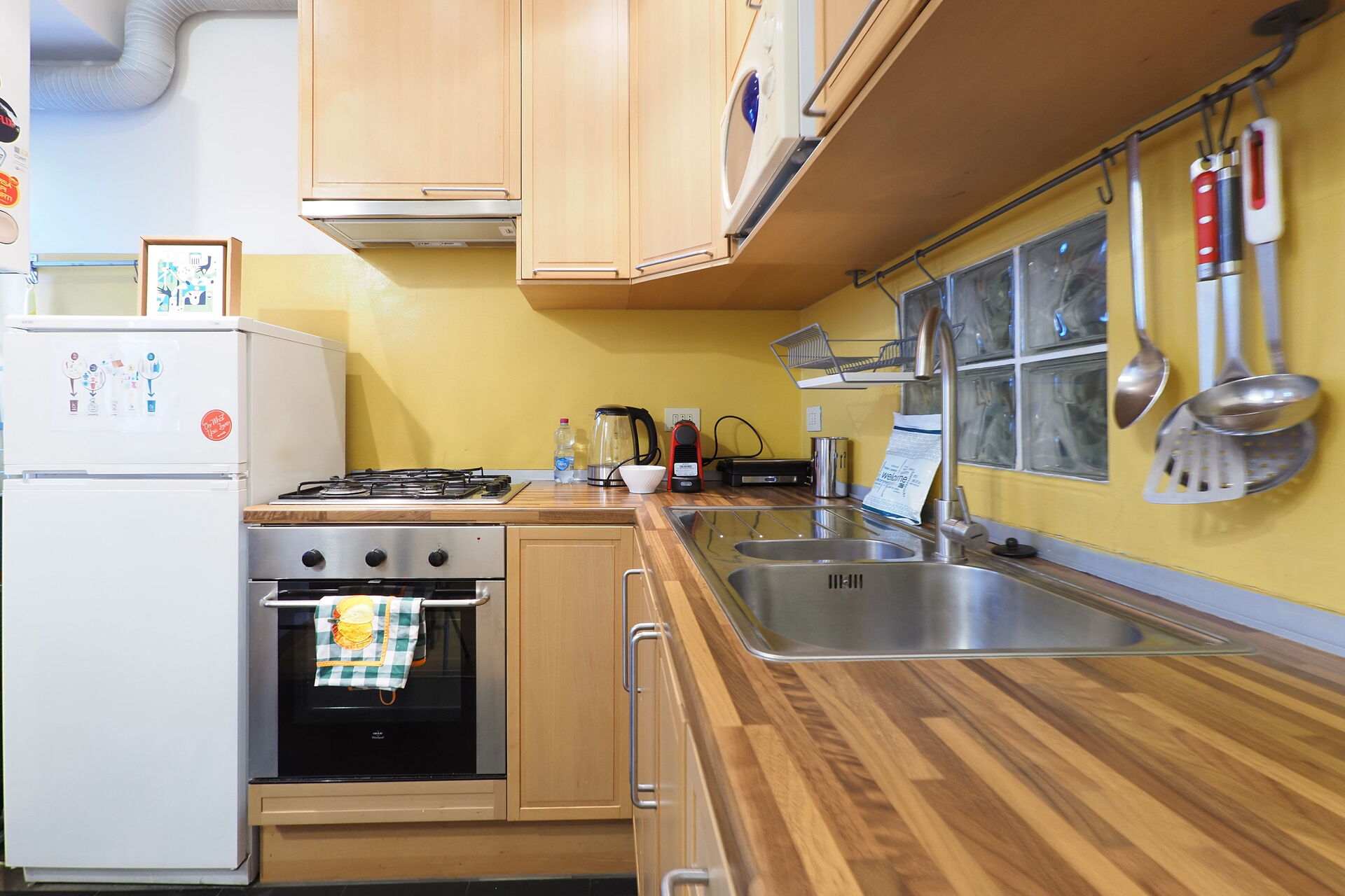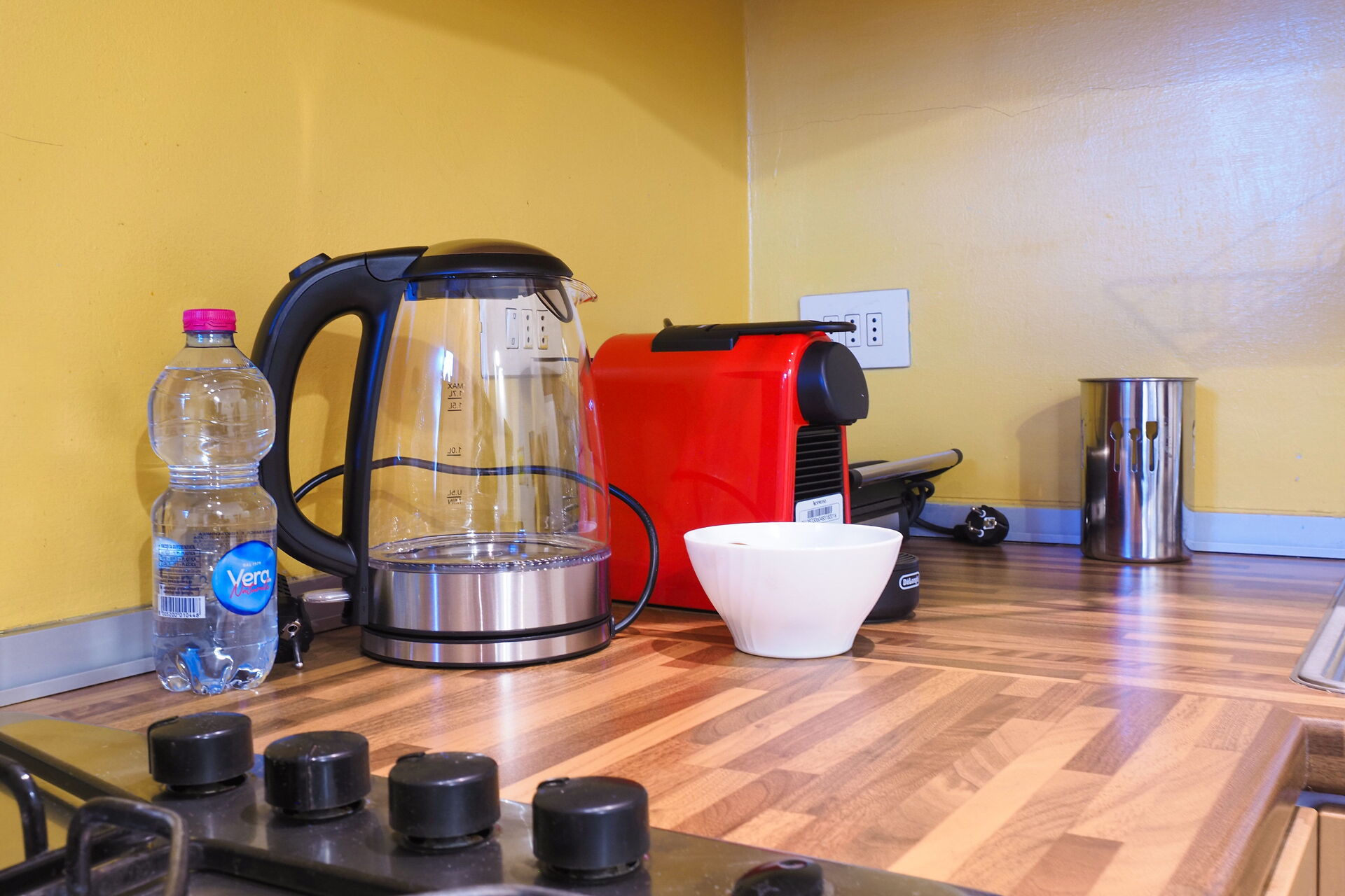 Cocina: cocina bien equipada, mesa de comedor, frigorífico, congelador, cocina de gas, horno, máquina de café italiana, máquina de café americana, WIFI internet, detector de humo, detector de co2.