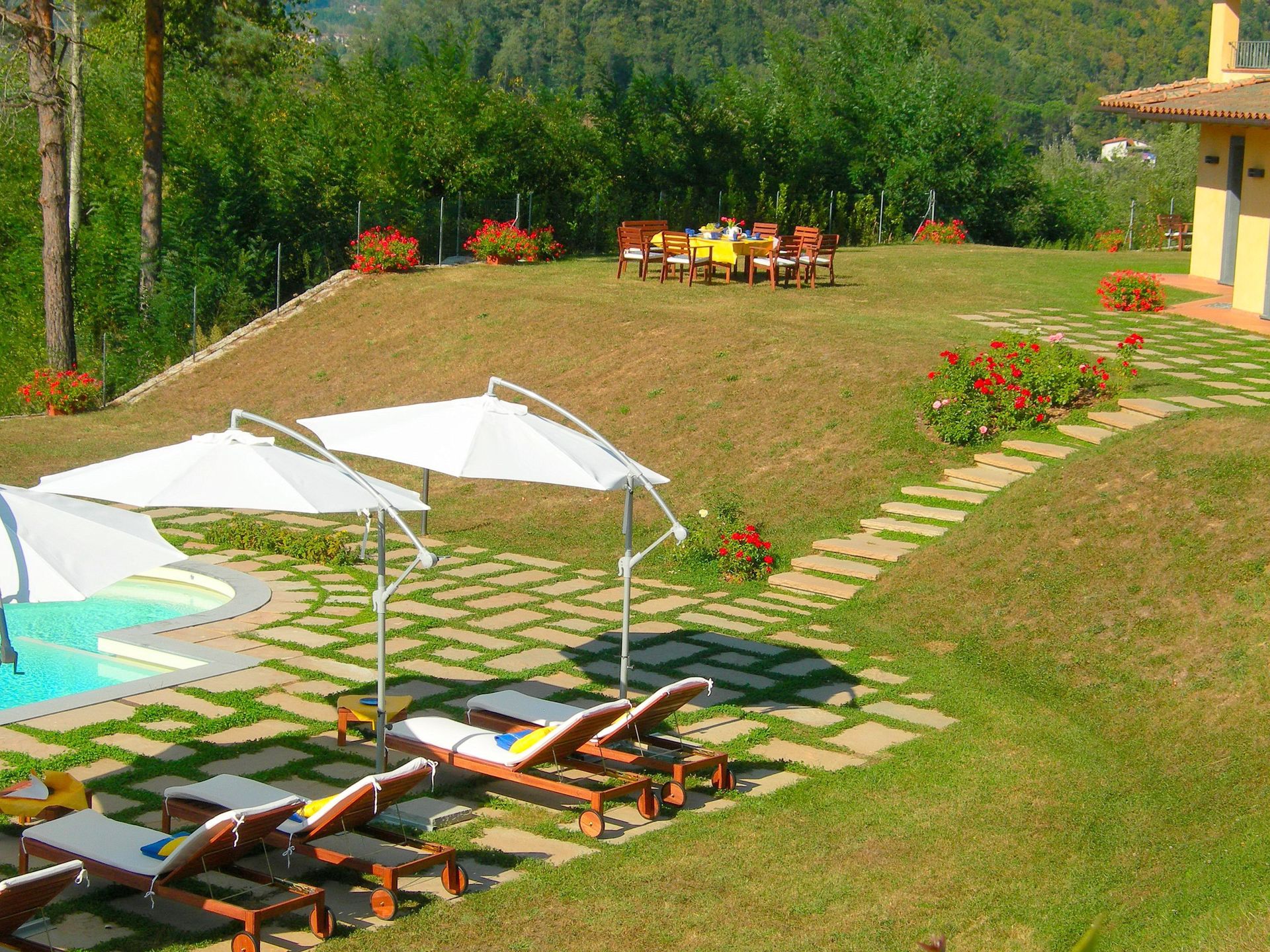 Villa Saida is built respecting the traditions of Tuscany, using materials available in the area, like wooden beams and rafters handcrafted on local walnut. Also materials for roof and floor are handmade in Tuscany. Certainly modernity is not forgotten. The value of the structure does not derive only from the high quality of the materials and from many comforts, but also from its location: in fact, on an area from where we can enjoy an unique view of the Alpi Apuane (the marble mountains), the Rocca Ariostesca in the centre of Castelnuovo, reachable walking on a shaded road, the Monte Alfonso and its fortress (that is part of the natural park of the Alpi Apuane) and finally the Appennino. In the river Serchio Valley we can see the Villetta bridge, one of the highest rail bridge of Italy. On the left we can admire the Pania della Croce, while on the right the beautiful "Pania di Corfino", a rocky group on which there is the Orecchiella Park, and at the far end the pass of the Radici inside the Appennino Park that, when snowy in winter, is a incredible sight. The area offers the possibility to practise many sports (trekking, golf, mountain bike, horse riding, in addition of the near tennis courts and soccer fields). Also other outdoor activities are available for a complete relaxation.