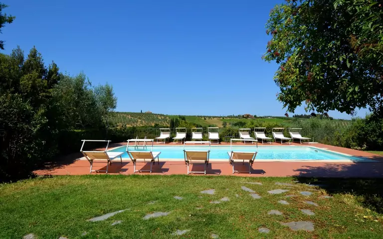 El jardín de 2.000 m² incluye un área dedicada a la vida silvestre. La piscina privada mide 5 x 10 metros con una profundidad de 140 cm en toda su extensión y está disponible del 1 de abril al 31 de octubre. Una amplia terraza permite admirar las vistas del paisaje de Chianti; el mobiliario de jardín y las instalaciones de barbecue hacen posible disfrutar de comidas al aire libre.