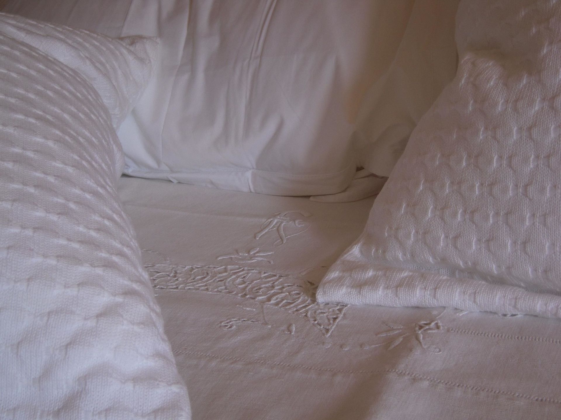 The Corn room has windows on all four sides as it is the highest room of the house. The windows have internal heavy curtains made with original embroided linens, but they do not have external shutters. Old terracotta floor and wooden beam ceiling make the space unique. The only furnisher is a king bed, two side tables, a wooden desk and an armchair.