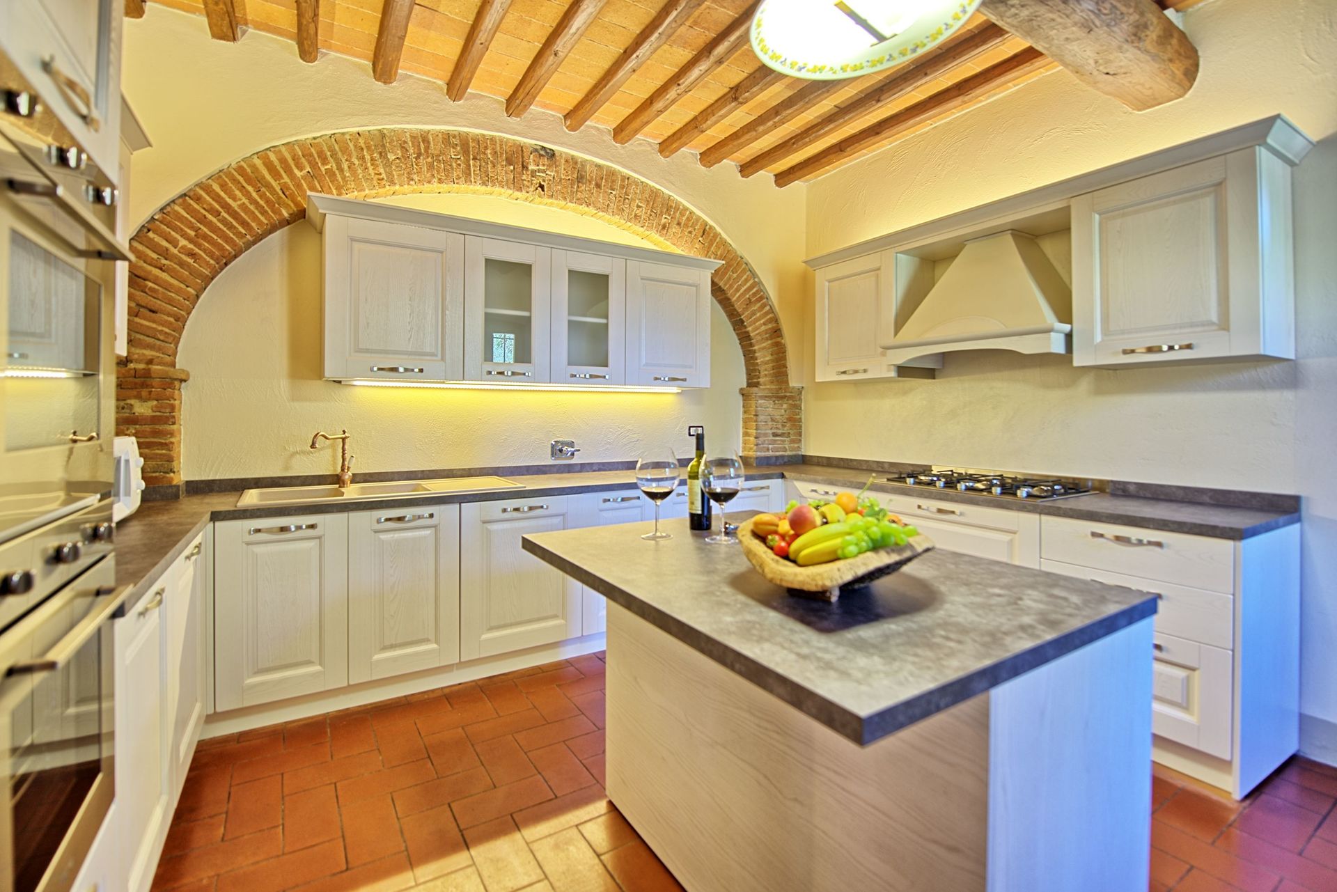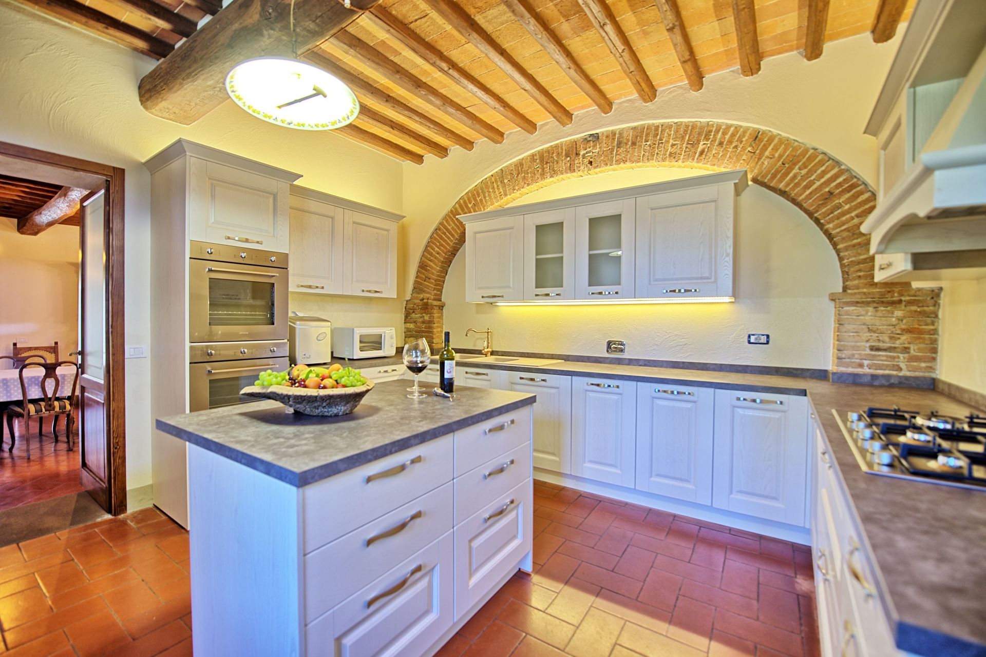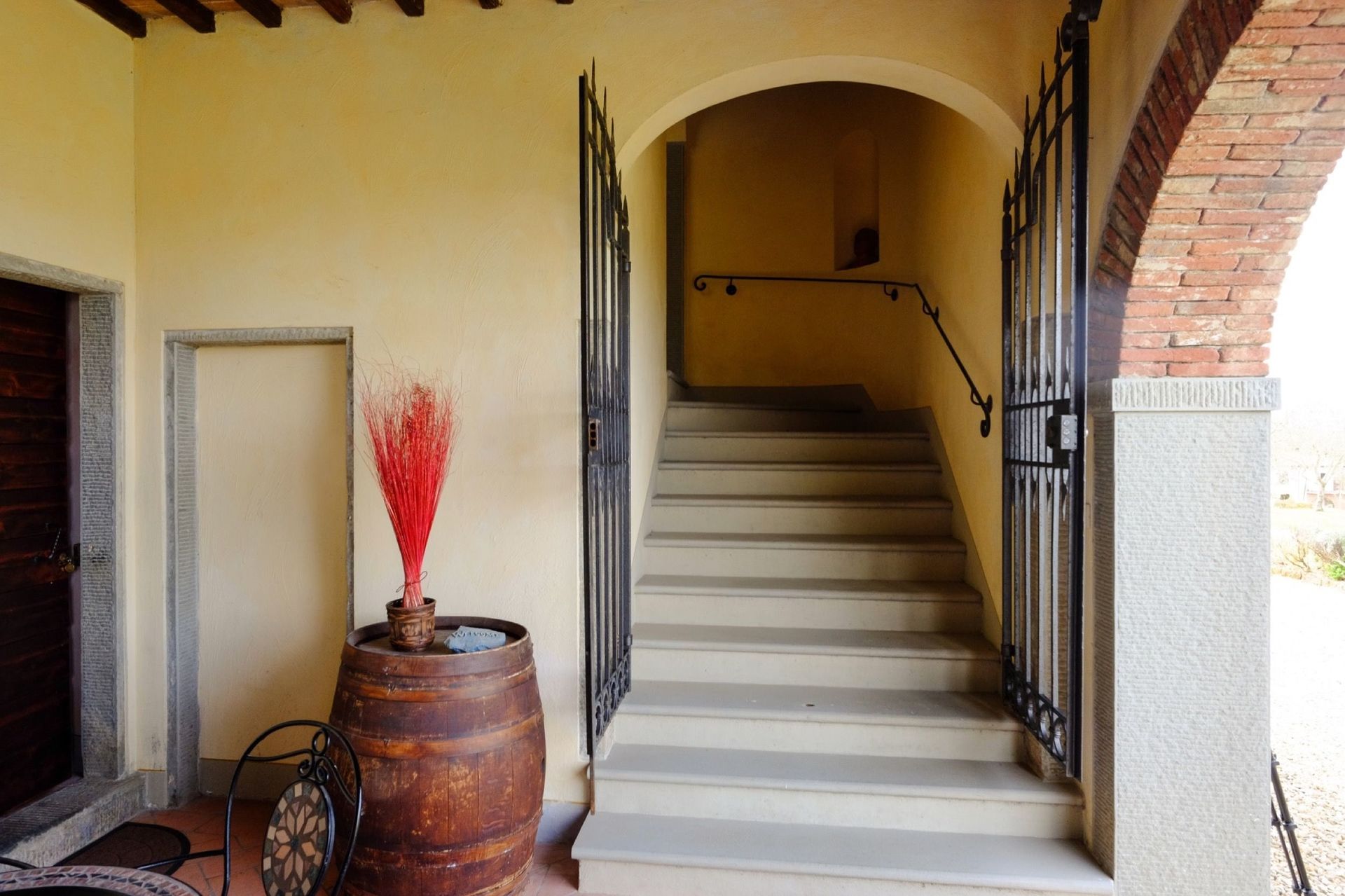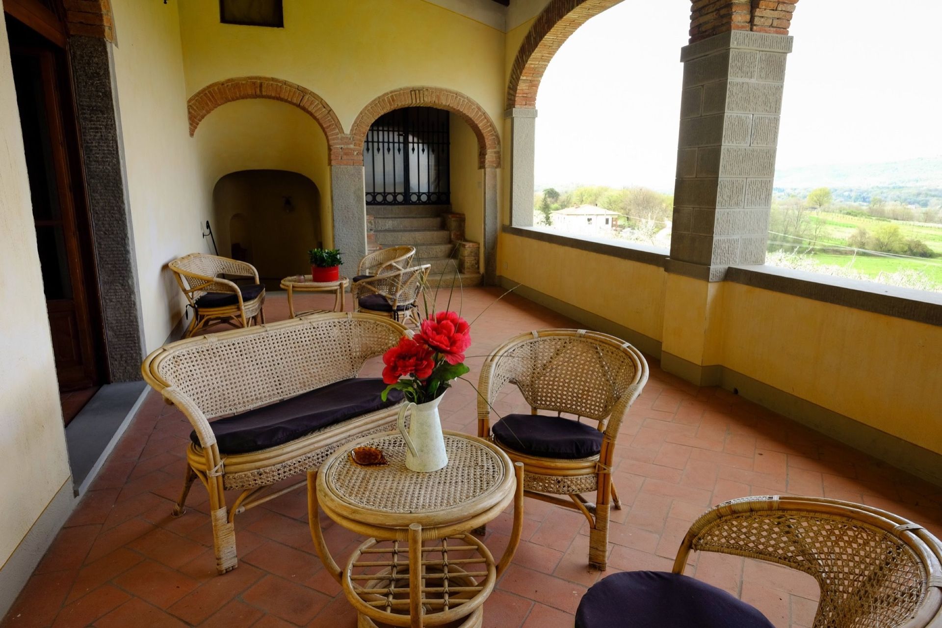 The property is in dominating and sunny location, amidst olive groves, and enjoys extensive vies over the surrounding landscape, over the small town of Bucine and the Chianti Classico hills in the distance.
