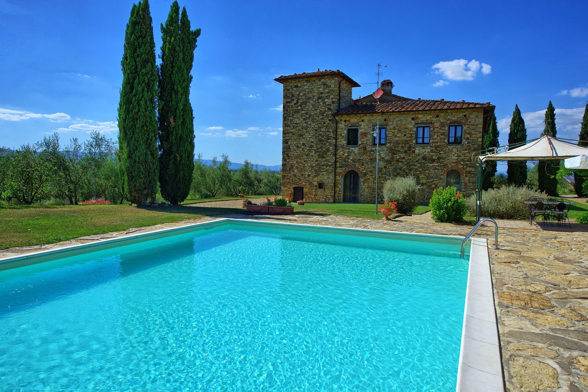 Distances: Bucine with food shops 500 m away, Montevarchi with all kinds of shops 10 km, Gaiole in Chianti 26 km away, Arezzo 30 km, Siena 44 km, Lake Trasimeno approx. 80 km away, San Gimignano 82 km, Volterra 93 km, Perugia 102 km, Lucca 135 km, Pisa (airport) 155 km away, Rome (airport) 235 km away.