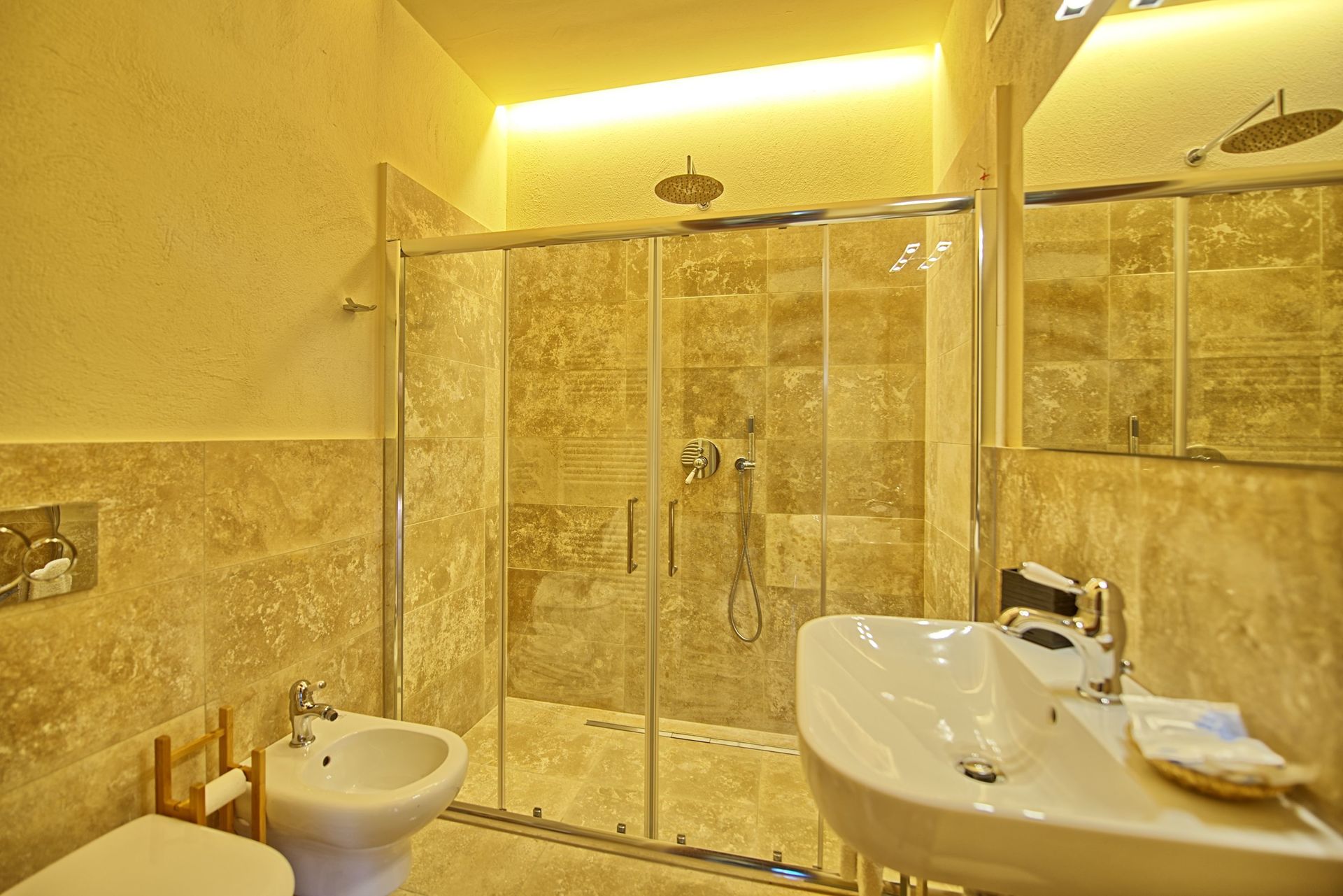 Guests can also enjoy use of a room providing a 6-seat Jacuzzi bath with water heated up to 40° and a Turkish bath available all year around.