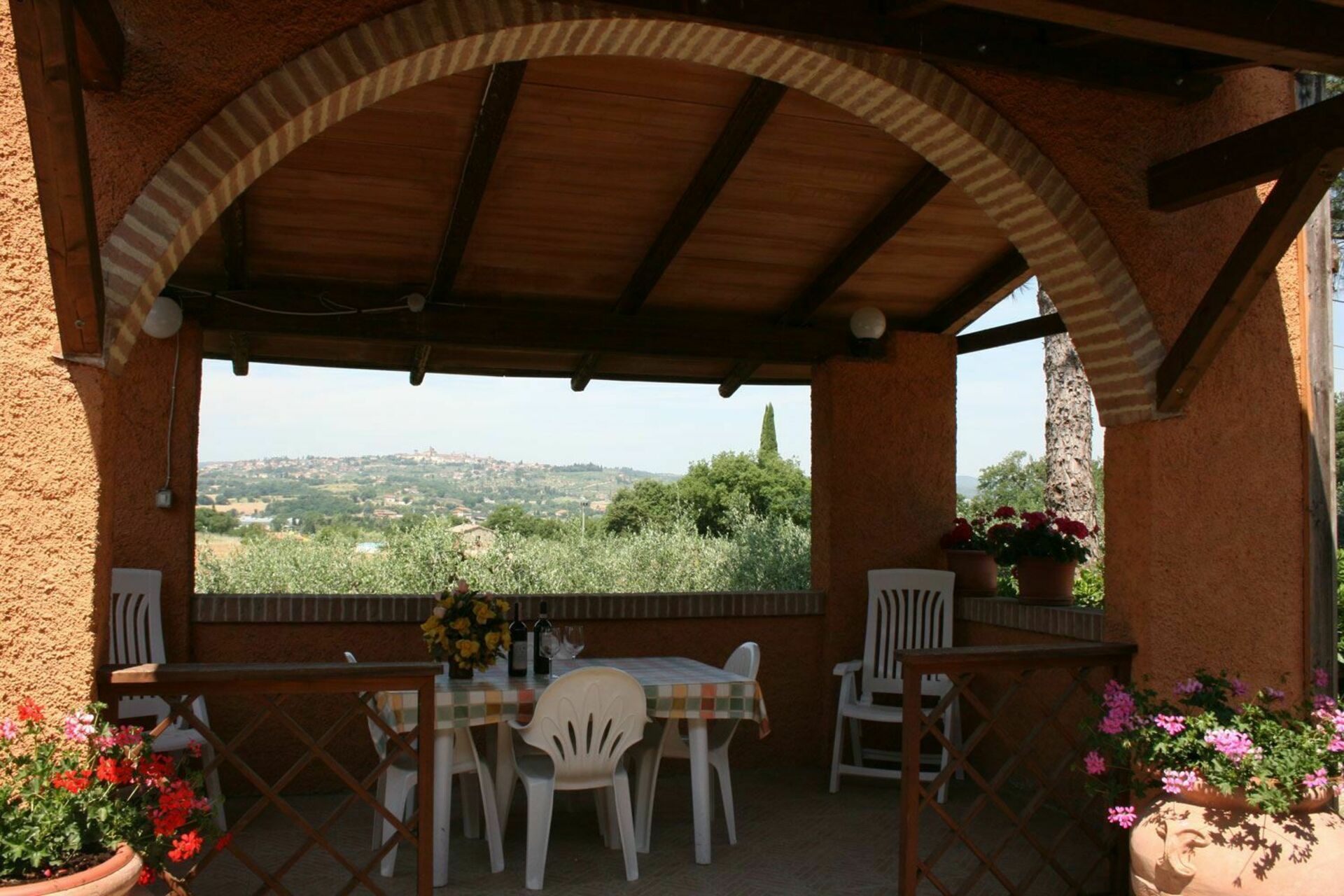 Ground floor apartment comprising kitchen-dining room, double bedroom, twin bedroom, bathroom with shower. In front of the apartment a private portico equipped with table and chairs.