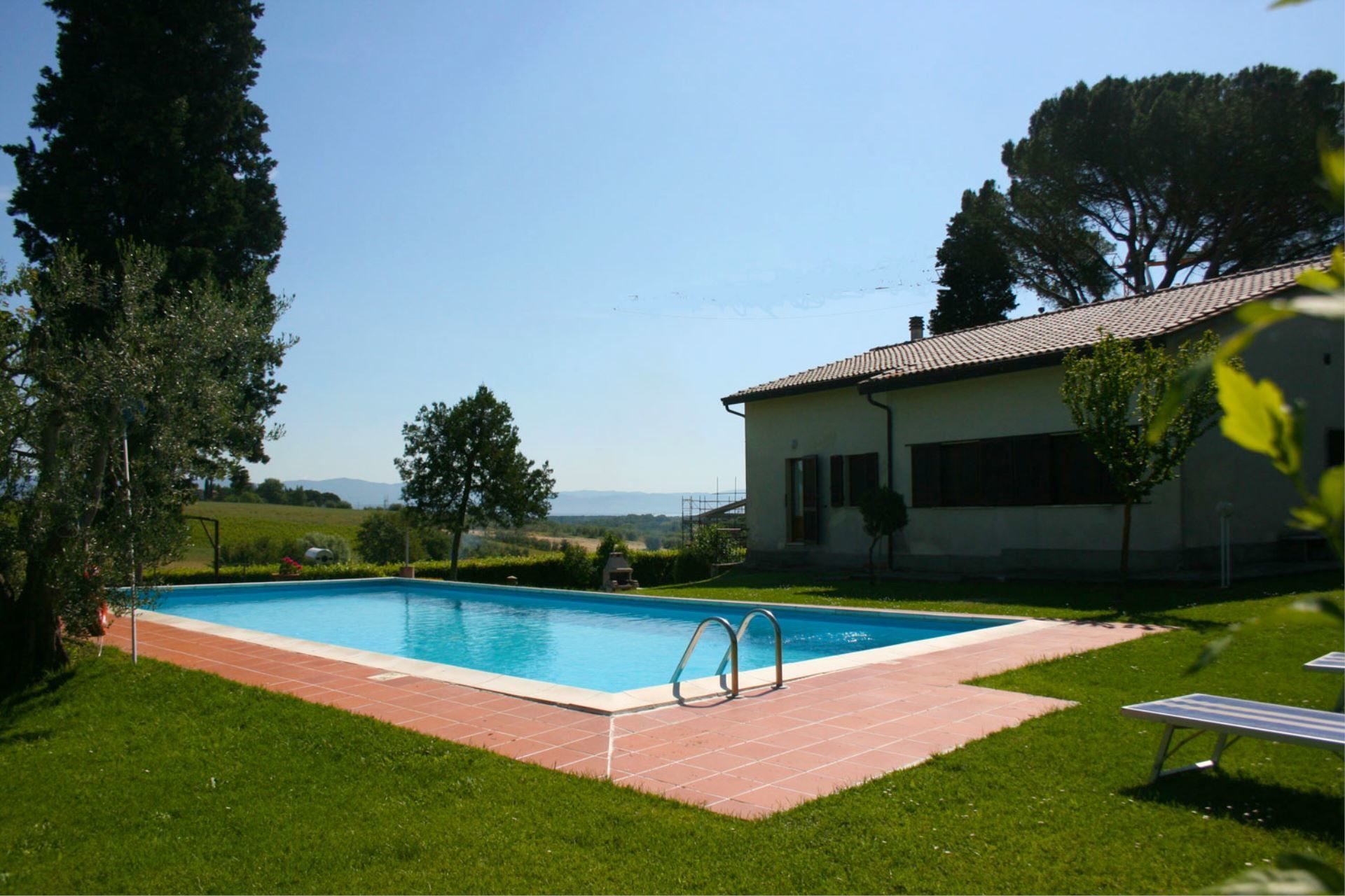 You will find Villa Il Cedro nestled in the hills covered with vineyards and olive groves that mark the natural border between the two most beautiful regions of central Italy, Tuscany and Umbria. The house is situated in a panoramic position. From the garden, on clear days, you will enjoy a beautiful view of Lake Trasimeno and the mountains of Cortona, and the towns of Castiglione del Lago 12 km, Montepulciano 15 km, and Cortona 18 km are easily accessible for day trips, for an evening out to dinner or for an aperitif. These towns have ancient origins and with their historic buildings, churches and stone-paved streets, they will welcome you in an atmosphere of times gone by.