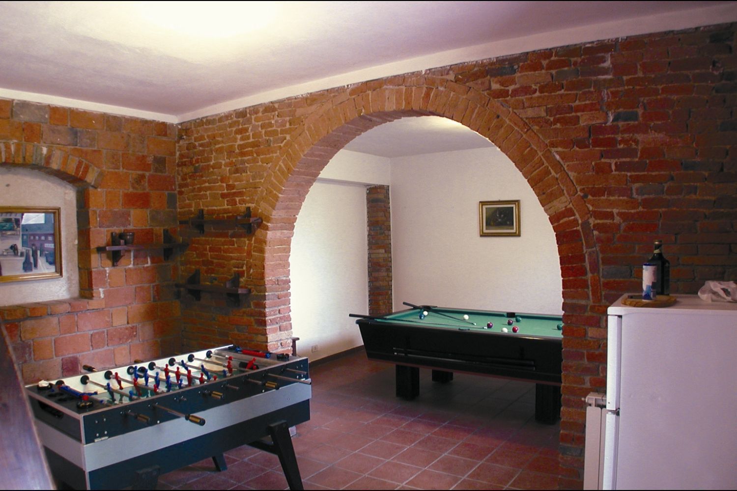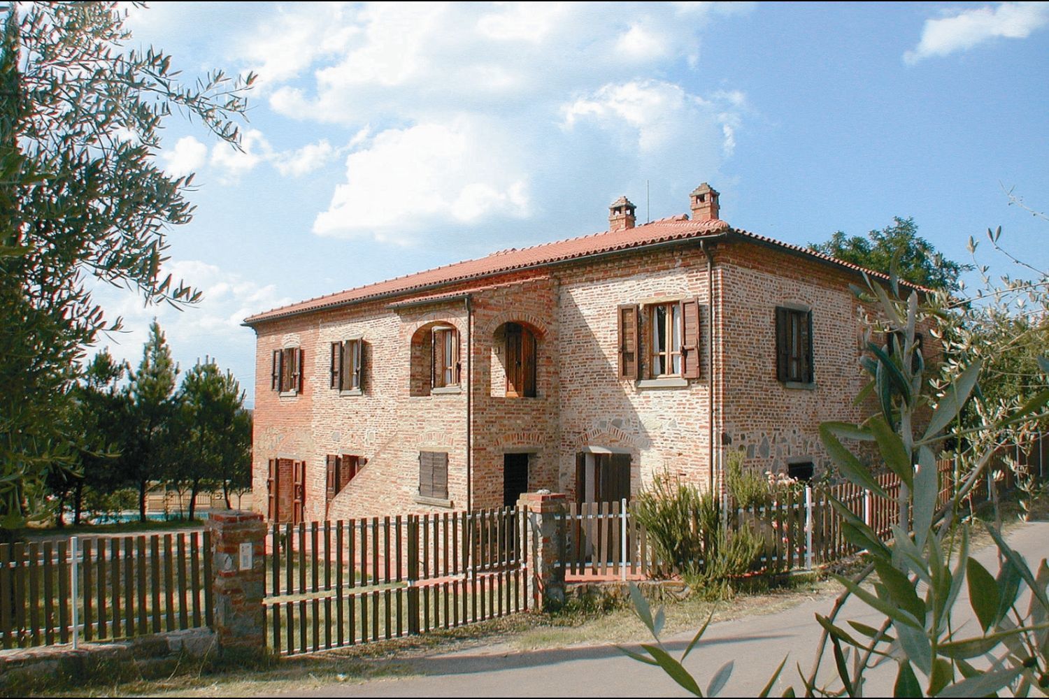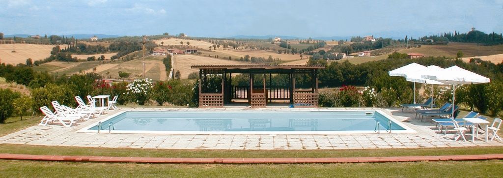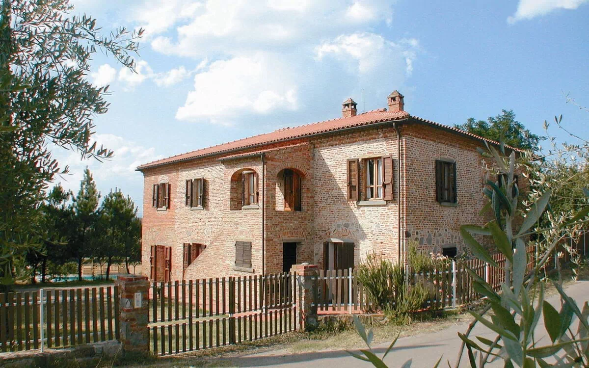 Enormous farmhouse in brick and stone situated on a hilltop. The nearby village of Foiano is one of the most important centres in Valdichiana, with shops and services of all types and innumerable cultural and folk festivals, which make the area an enjoyable holiday destination. Because of the large number of beds available and the large communal spaces, both inside and outside, the house is suitable for large families or groups of friends who want to spend a holiday together in absolute freedom. The garden that surrounds the house is completely fenced off, shaded by tall plants and equipped with garden furniture and a barbecue. The beautiful 6 x 12 m swimmimg pool, built in a sunny, panoramic position, provides an excellent, fun way to keep cool during the hot summer days. Furnishing in the house is simple but comfortable.