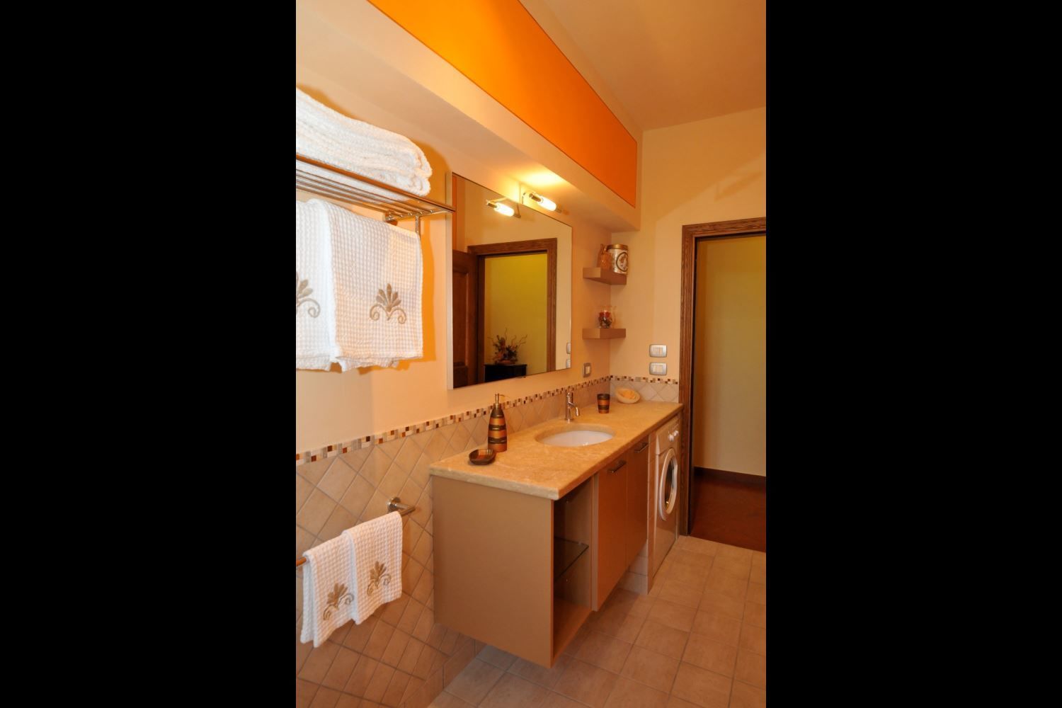 The interiors have the design of a cozy and spacious country house, with antique furniture and high ceilings, walls in warm colors and corners designed to relax and spend quality time with your family or friends.