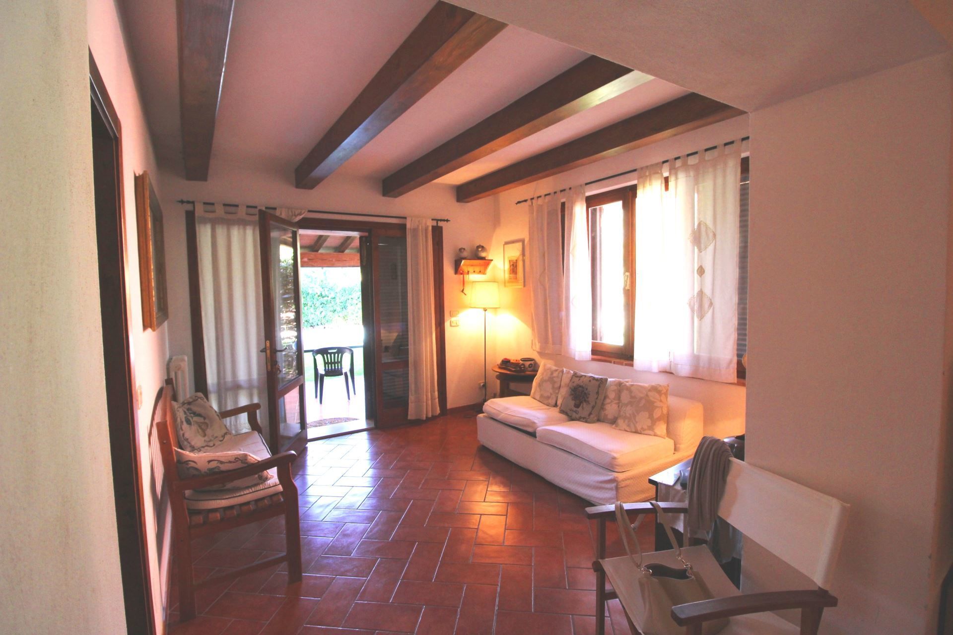 The property is completely fenced and has a well-kept green garden of about 300 m2 where there is a private swimming pool (size 8x4 m - depth 1,30-,160 m - open from 01st May to 30th September), a barbecue, a porch with table and chairs for outdoor dining and also a foosball table for adults and children.