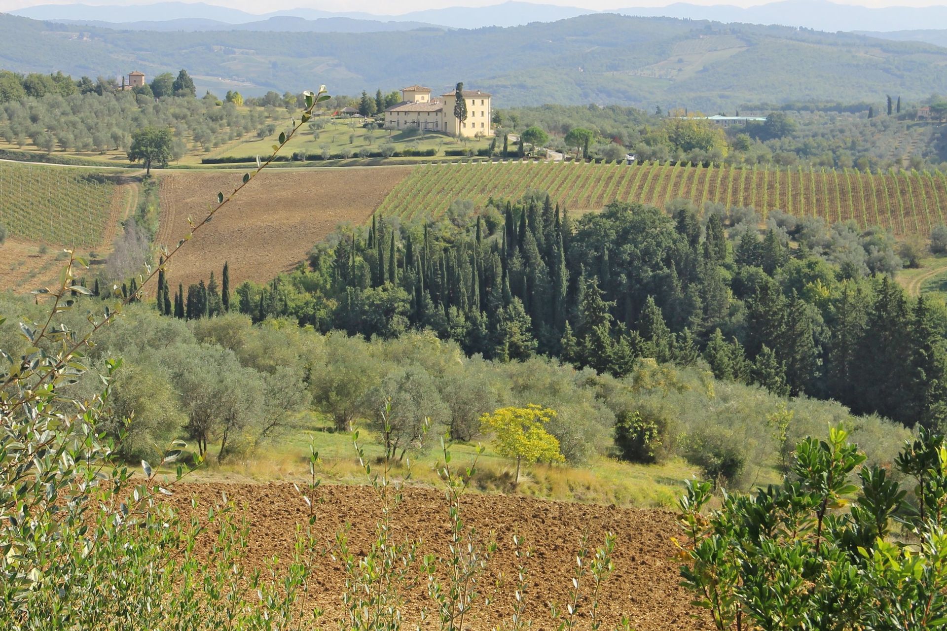 Una bodega particularmente pintoresca y encantadora en la que se puede hacer todo lo anterior y mucho más, es la hermosa Castello di Monsanto. Aunque Castello di Monsanto en realidad data de mediados del siglo 18 y la producción de vino en la zona se remonta a siglos, es en los últimos cincuenta años que la finca es el hogar de la familia Bianchi y sus amados vinos. Situada en Barberino Val d'Elsa, en el oeste Chianti Classico, un poco al noroeste de Castellina in Chianti, este increíble castillo histórico fue donde el fundador Aldo Bianchi, un nativo de San Gimignano que había dejado la Toscana antes de la Segunda Guerra Mundial para buscar fortuna en otra parte del norte de Italia, fue invitado a una celebración de una boda en este impresionante castillo histórico. Mientras Aldo admiraba las fantásticas vistas desde la terraza del castillo de su ciudad natal de San Gimignano, sobre las colinas de la región del Chianti Fiorentino, y justo en el Monte Amiata y los Alpes Apuanos desde la terraza del castillo, Aldo se enamoró. En pocos meses, fue propietario del Castillo de Monsanto.
