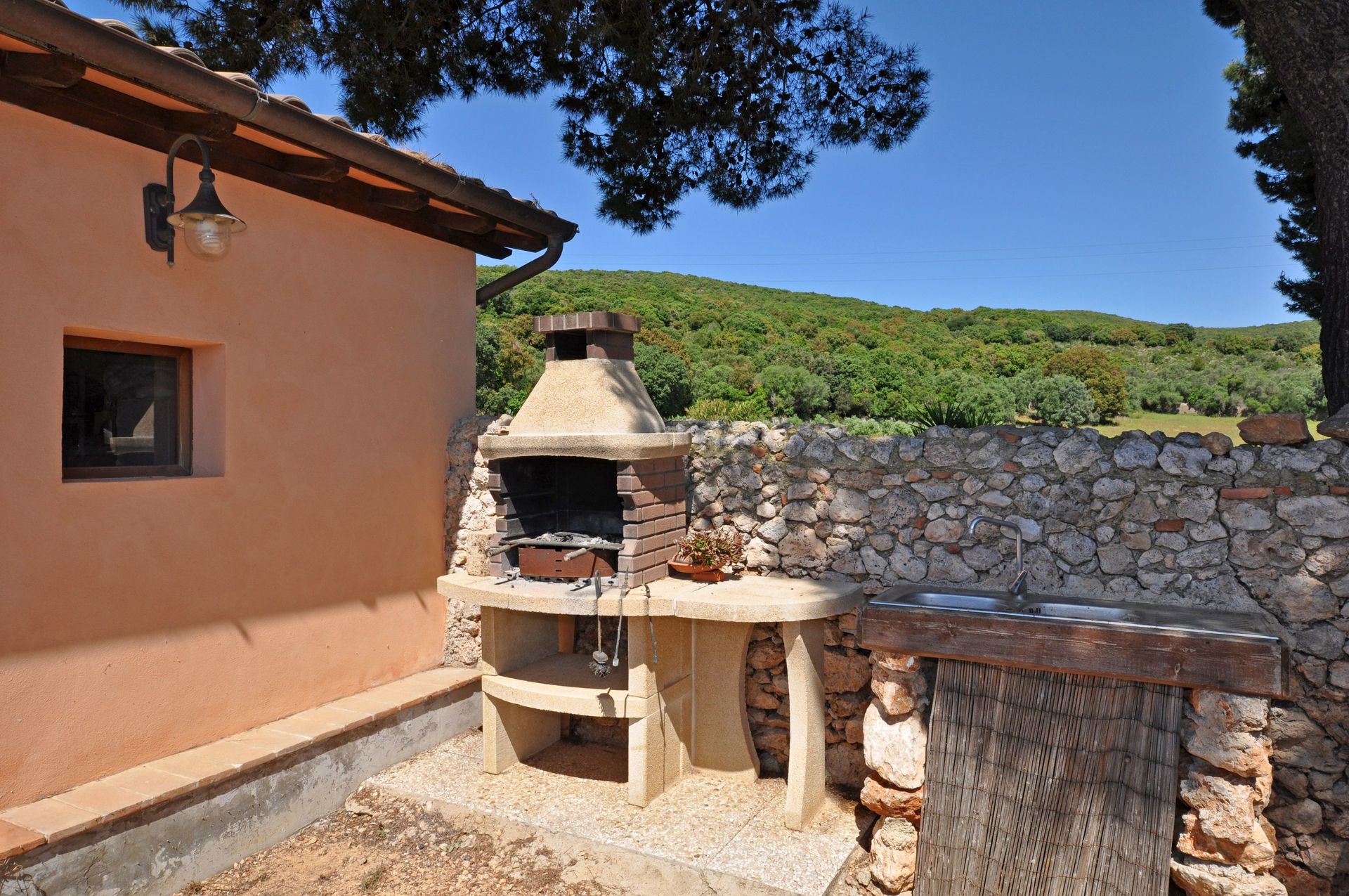 70 m2 Ground floor: living-room (satellite TV) with fireplace, double sofa-bed, dining area and kitchen corner (oven, freezer), double bedroom with access on to the garden, bathroom with shower.