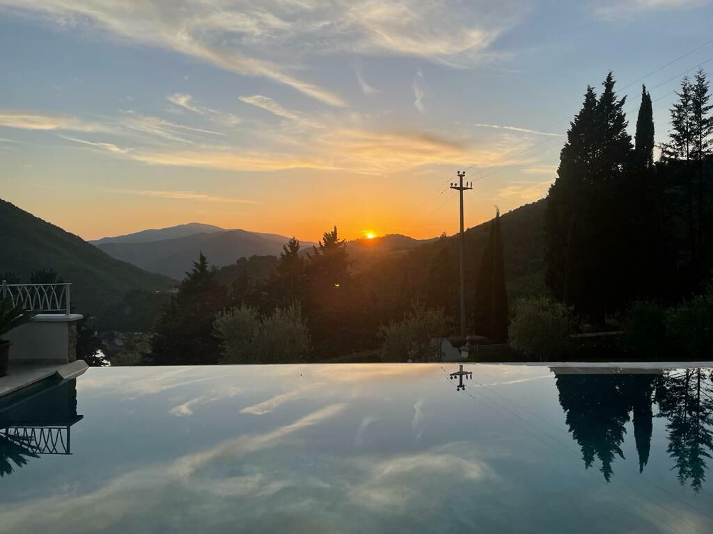 The hilly landscape surrounding the property is perfect for a relaxing vacation in total privacy. A well-tended garden and splendid, private pool are ideal for relaxing and cooling off with friends or family on summer days. There are terraces furnished with tables and chairs for dining outside while taking in the marvelous sweeping views of the surrounding hills and countryside.