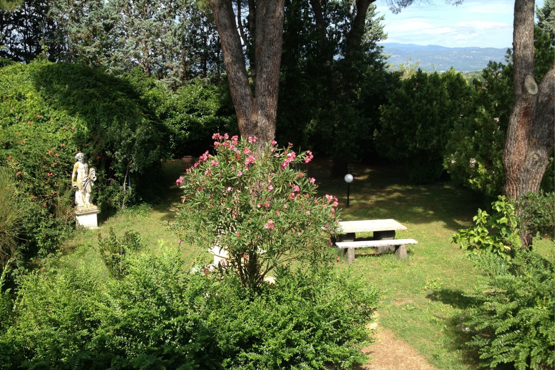 A short distance from the city of Arezzo, an ideal starting point for visiting Tuscany, we find Villa Quattro Mori, a charming villa that once belonged to an ancient and noble family of Counts of Arezzo. It has in fact maintained its charm, in the furnishings of the elegant bedrooms, the lounge, the swimming pool adorned with marble and statues, and the large park shaded by centuries-old pines.