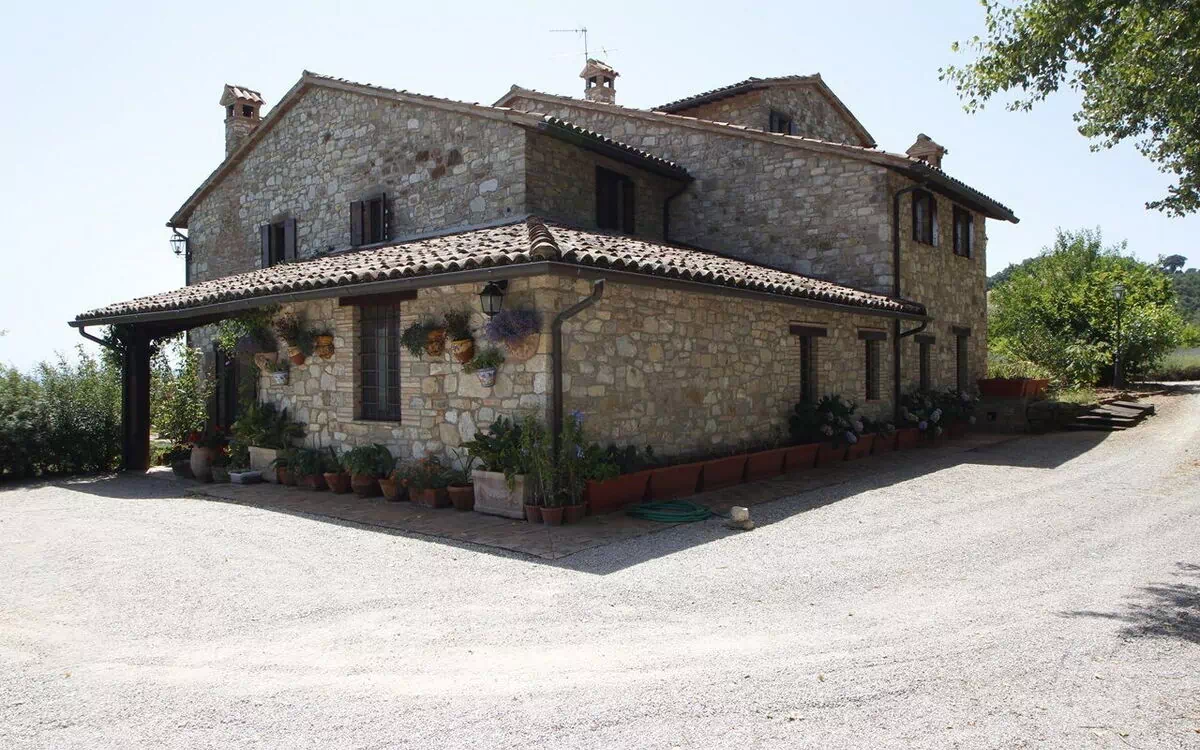 The Casale Poggio Girasoli is situated only 8 km from the centre of town, on the top of hill that offers one of the most spectacular views of the skyline of Todi and its medieval buildings, including the church of Santa Maria della Consolazione, one of the most beautiful of the Italian Renaissance. It’s a typical stone-built farmhouse of the area, which recent and attentive restoration work has transformed into a prestigious, cosy residence equipped with all the comforts.
