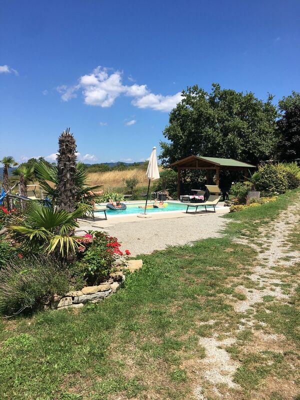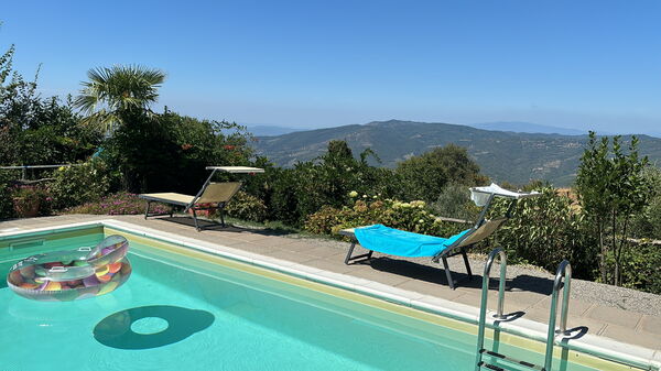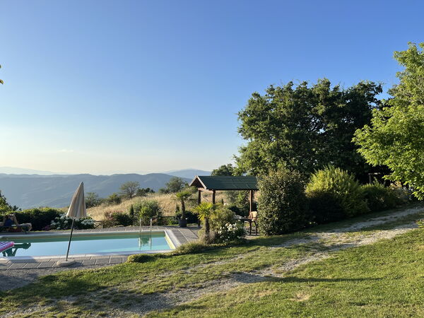 [English translation courtesy of Easy Reserve] Unique, absolutely quiet location in the mountains of Tuscany. The house is as described and very well maintained. The house is surrounded by many fruit trees that can be harvested depending on the season, and the many flowers around the house are beautiful. The really big garden is completely fenced in, so it was also wonderful for our dog Lucy to run through the garden. The highlight of the house is the great pool with the sunbeds and the pool house. Especially this year in July it was great because it was very hot. We stayed here for the 3rd time now.