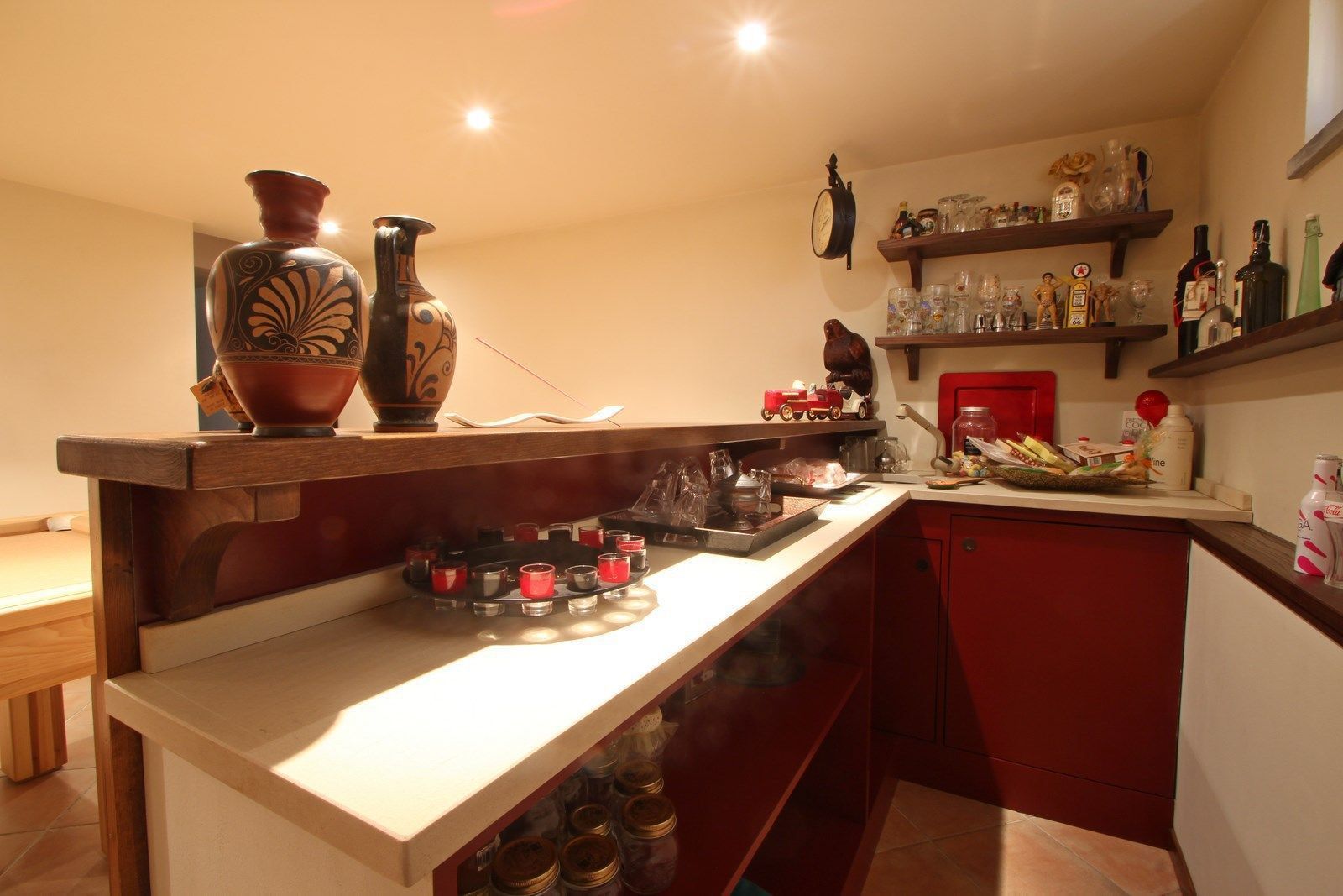 Amusement area with bar (has fridge), pool table and jukebox.