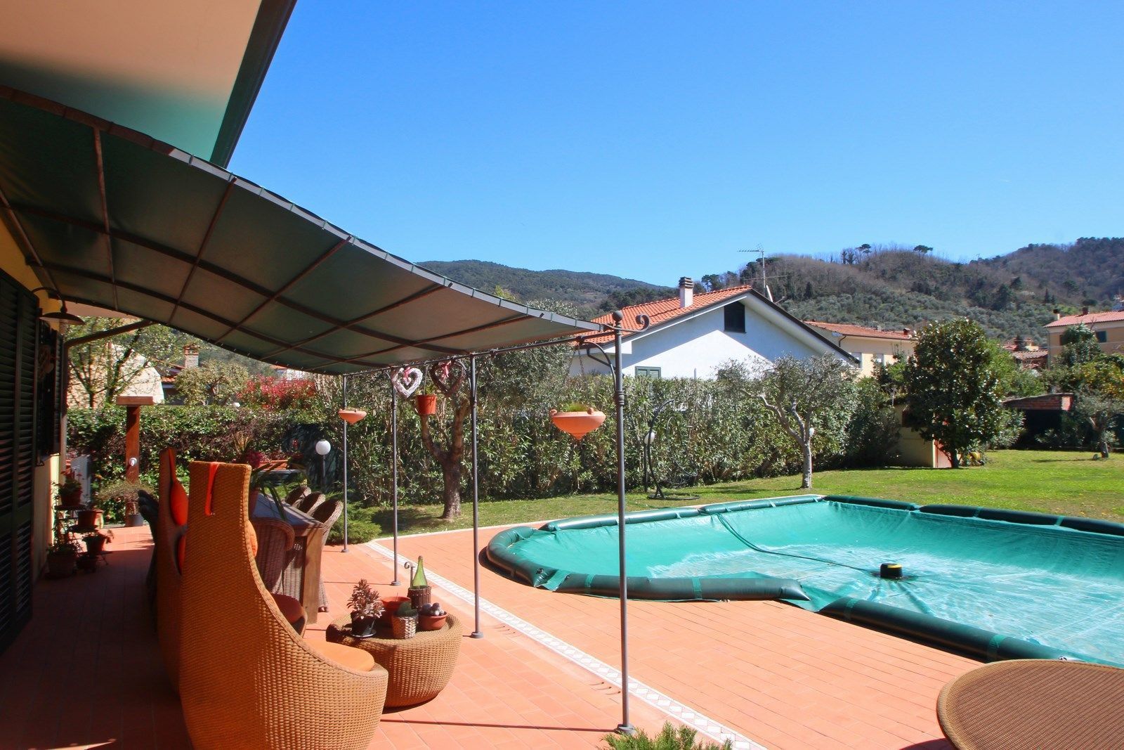 Villa Massarosa is surrounded by a garden of about 1800 square meters fully fenced and protected with hedges from the road ensuring privacy.
