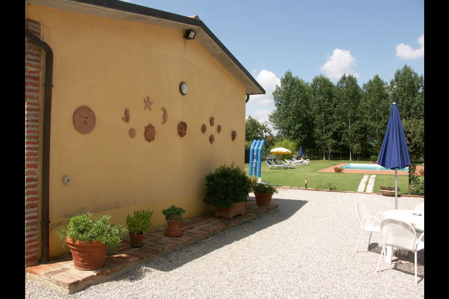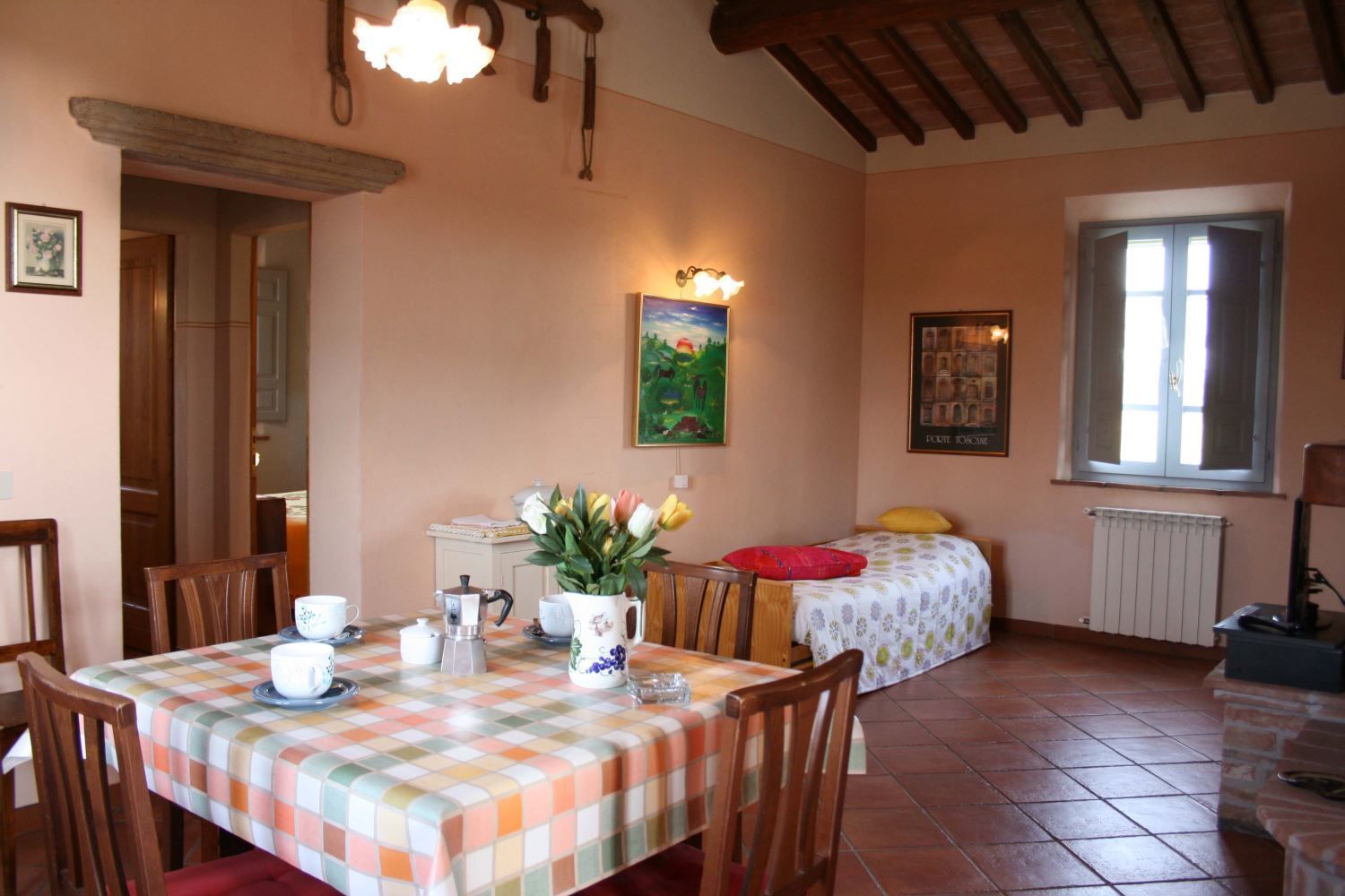 First floor apartment with access from external staircase with typical loggia, in common with apartment Le Arcate, living-dining room with fireplace and satellite TV, kitchenette, double bedroom, bathroom with shower. Possibility to add two single beds in the living-room.