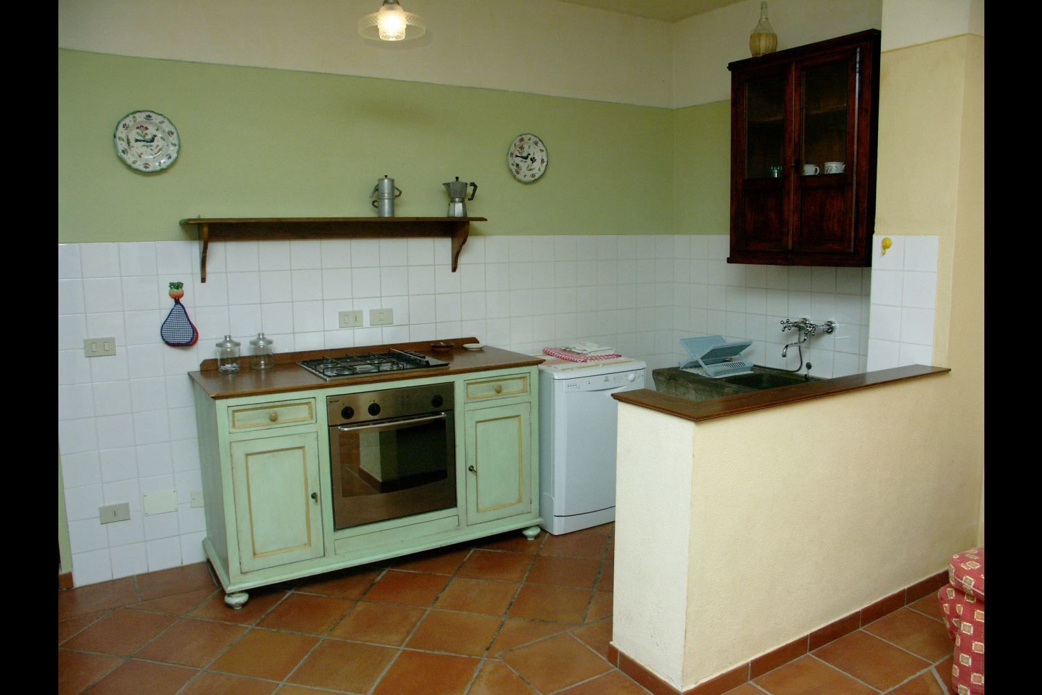 Ground floor apartment with entrance from a small porch in common with apartment I Voltoni, living-dining room with kitchen corner, sofa, fireplace and satellite TV, twin bedroom, double bedroom, wide bathroom with shower. Private pergola with table and chairs for outdoor meals.