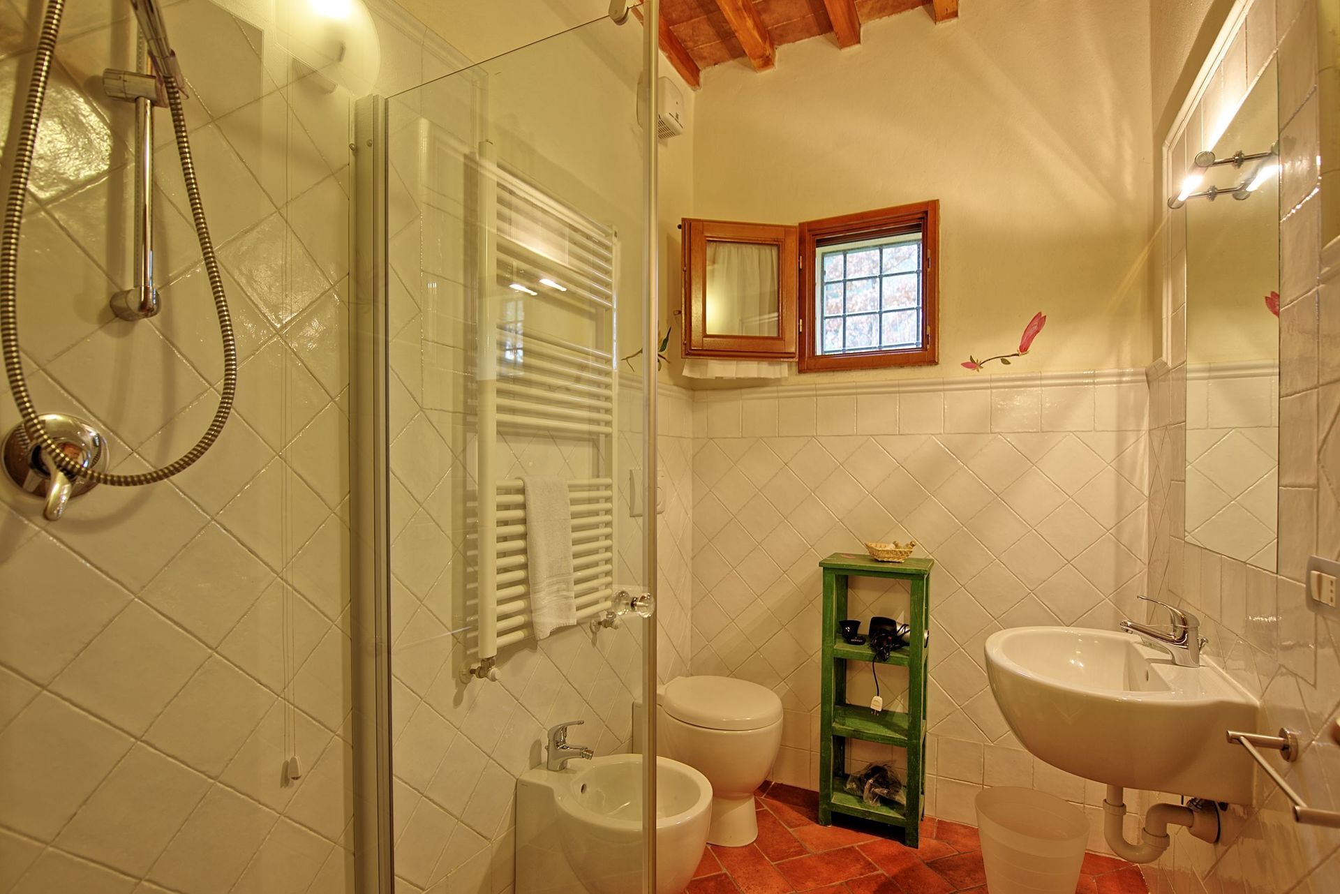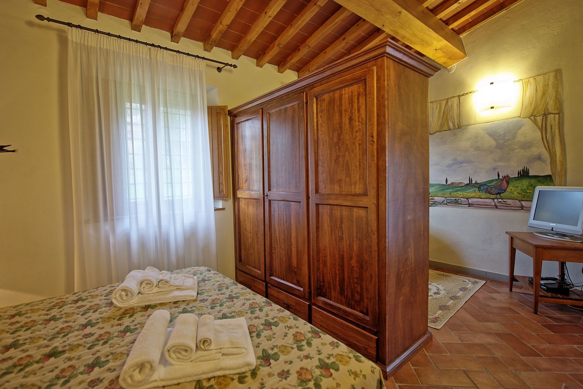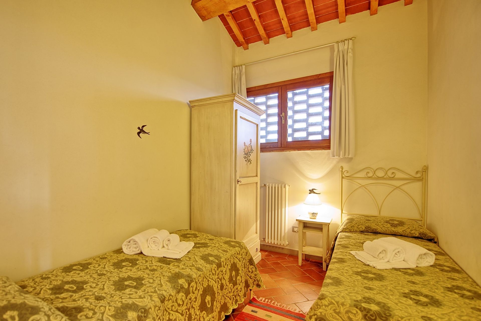 Distances: Baccaiano (bar, restaurant, food shops) 2,5 km away, Montespertoli (shops of any kind) a 6,5 km away, Florence is just 30 km away, San Gimignano 35 km away, Chianti Classico (with the pretty villages of Castellina in Chianti, Greve in Chianti, Radda in Chianti, Gaiole in Chianti etc.. ) is within 40 - 80 km, Pisa and Lucca 70 km away, Siena 80 km away, Arezzo 103 km, away Cortona 130 km away.