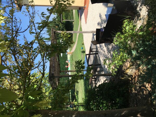 La zona del jardín no está completamente vallada, de todos modos, la zona de la piscina está separada del resto del jardín por un seto (altura de unos 0,7 m) y una red de alambre. Hay una pequeña puerta que se puede cerrar con llave, para la seguridad de los niños pequeños.